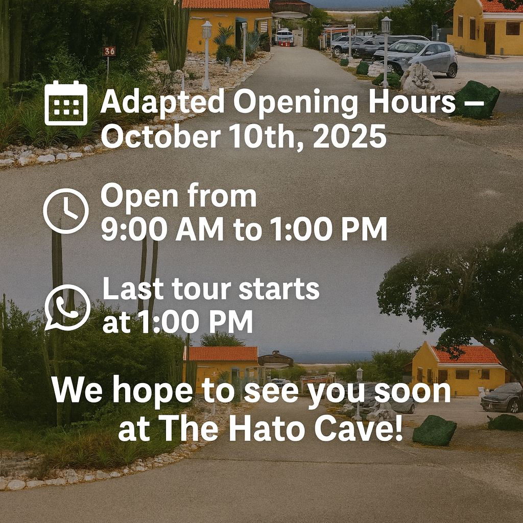 Welcome daily, from 9 am until 3 pm, guided tours trough this beautiful Cave are given every full hour first one at 9am followed by every full hour, last one at 3pm. The tour could be given in English, Dutch, Spanish, and Papiamento. Other languages on request.